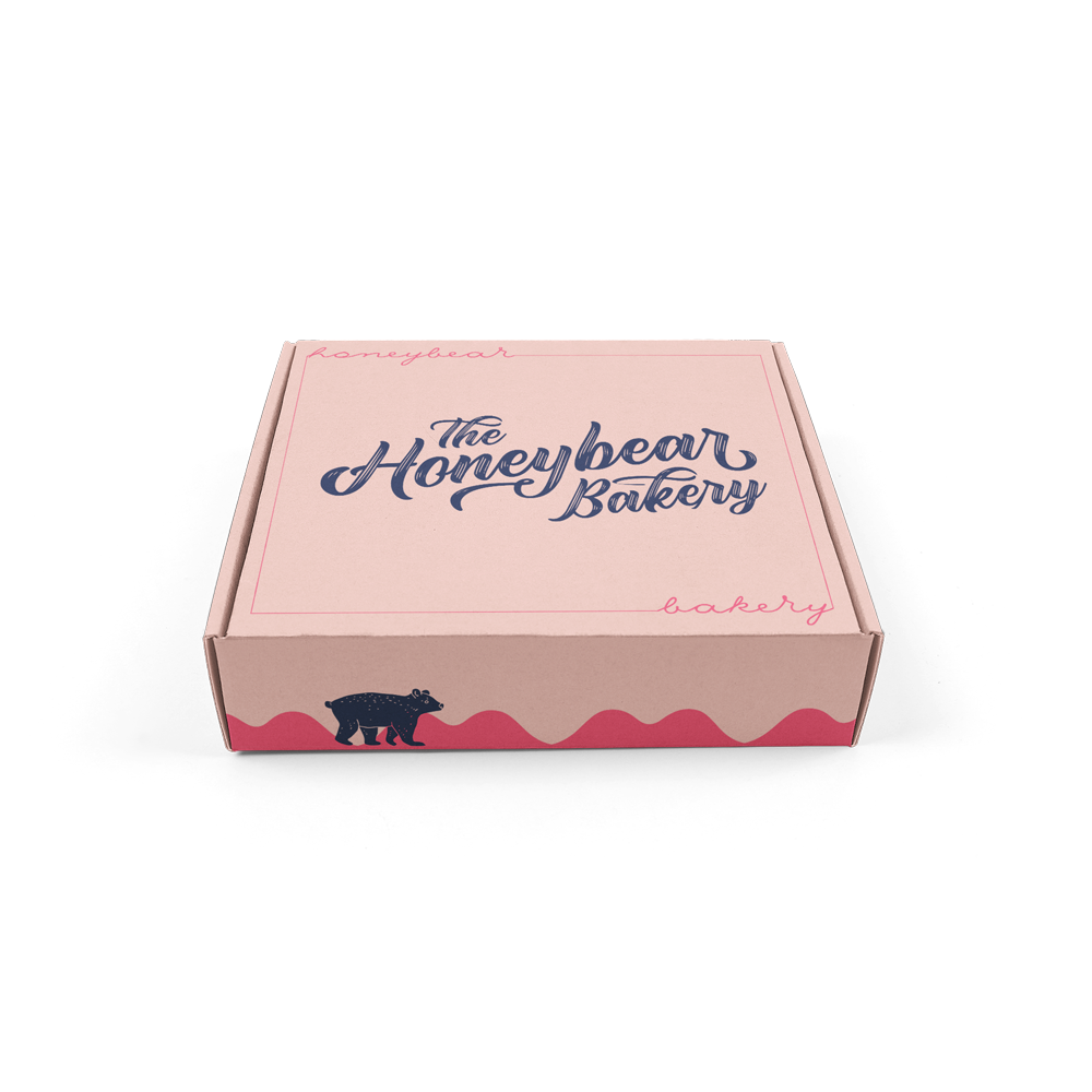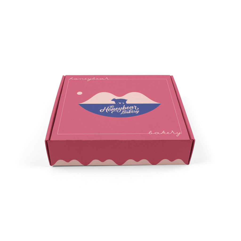 Branding for The Honeybear Bakery, a creative home-bakery born out of lockdown. The HBB wanted a flexible logo alongside designs for their eco-friendly packaging. ‘Sealed with a kiss’ was a key aspect to be included, done so by doubling up as the landscape for the main logo.