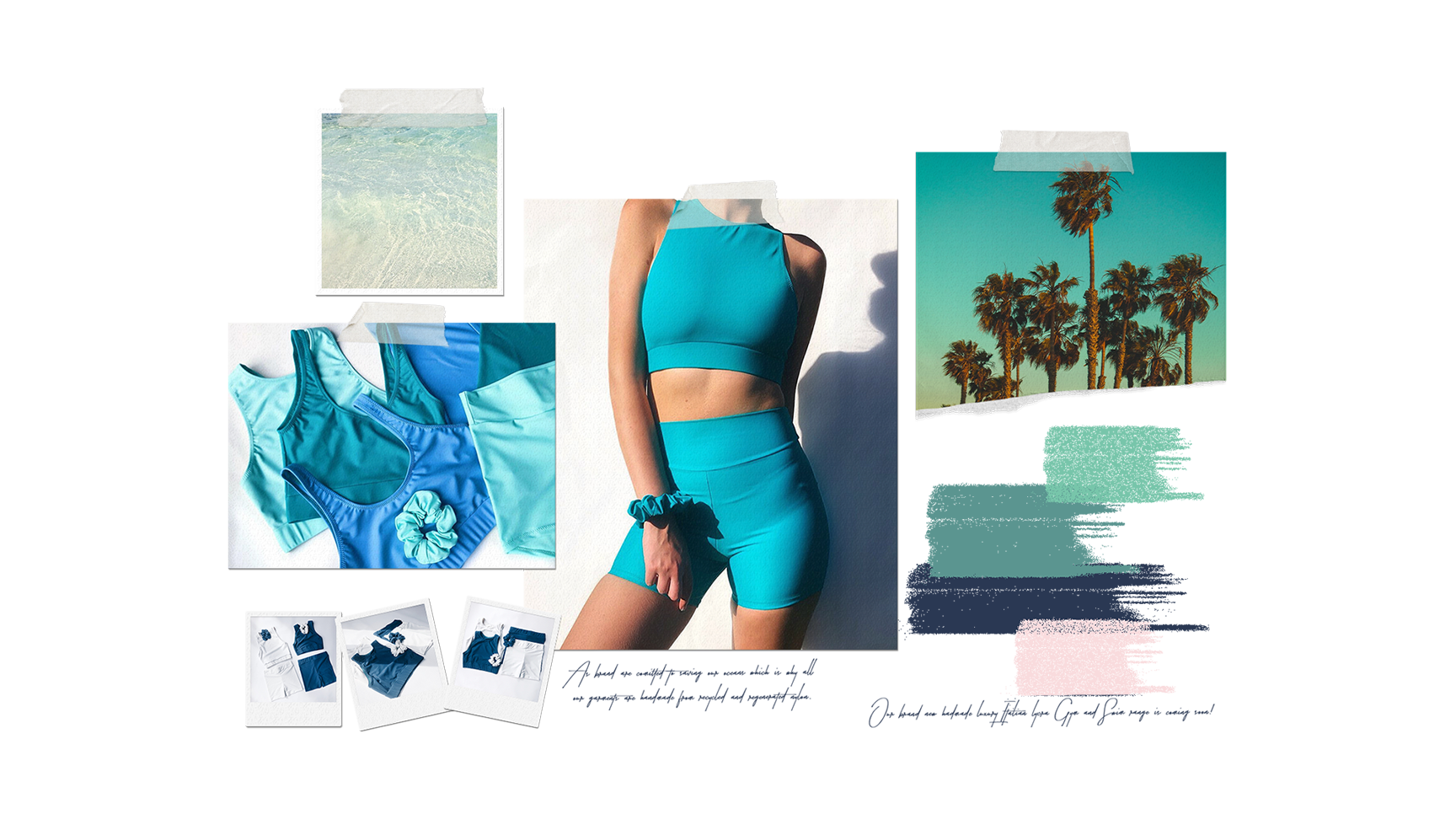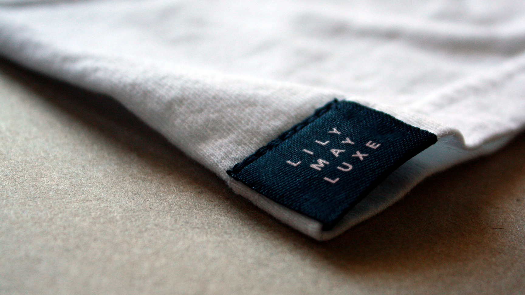 Brand identity for Lily May Luxe. Sport and swim wear made from recycled and regenerated end-of-the line fabric, represented in an adaptable brand mark and strong, bold typography.